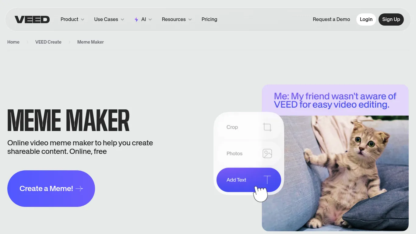 VEED Meme Maker scored 3.1 out of 5 Points in the Meme Generator Tools category.